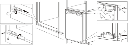 Når køkkenskabet er i vater, opstilles fryseren igen ved omhyggeligt,at følge monteringsanvisningerne, der fulgte med produktet. - Kontroller om skabet er monteret i den rigtige dybde og fastgjort korret.