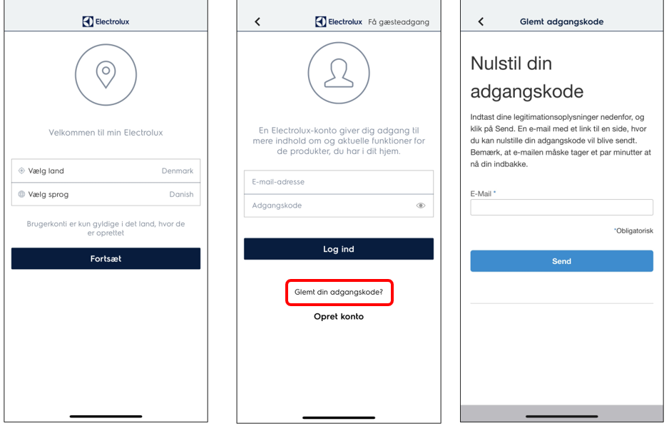 - Jeg har glemt kode / Password til appen - hvad kan jeg gøre