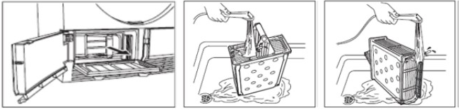 På tørretumblere med varmepumpe skal rummet omkring varmeveksleren jævnligt rengøres for, at sikre optimal tørring og lavt energiforbrug. Varmeveksleren finder du bag klappen i bunden, under døren. Vandfilteret (hvis maskinen har et) udtages og skylles under en vandhane.