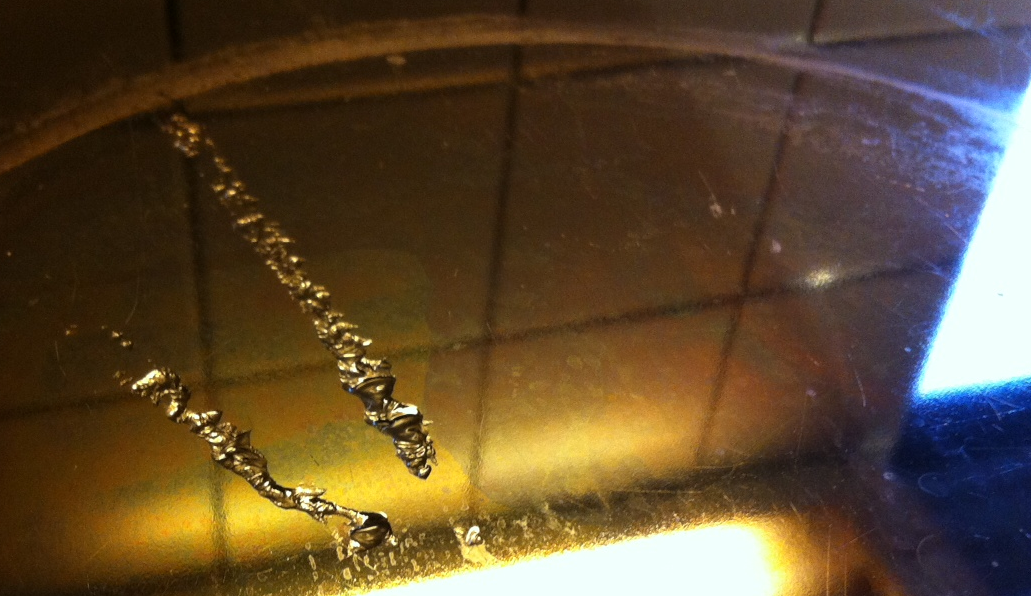 Se her eksempel på huller i glaspladen efter sukkerholdigt overkog: