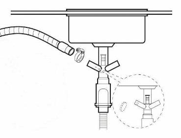 - Tjek at lukkeproppen er fjernet fra afløbet. (hvis opvaskemaskinen er installeret eller flyttet for nyligt). Lukkeproppen skal fjernes fra vandlåsen. Afmonter afløbsslangen hvor den er forbundet til vandlåsen, fjern lukkeproppen, og tilslut slangen igen.