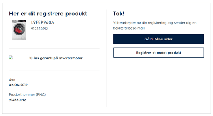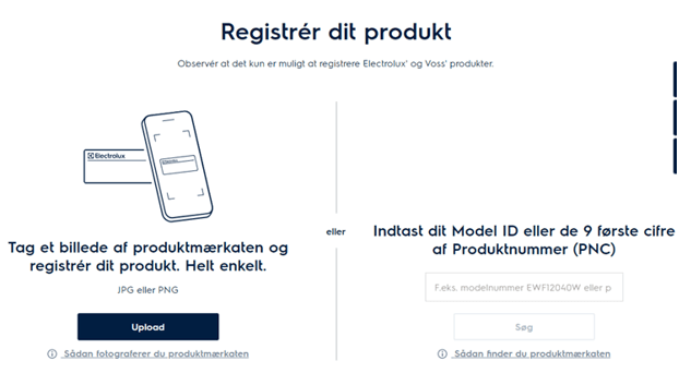 - Klik på “Registrér et produkt”/”Produktregistrering”.