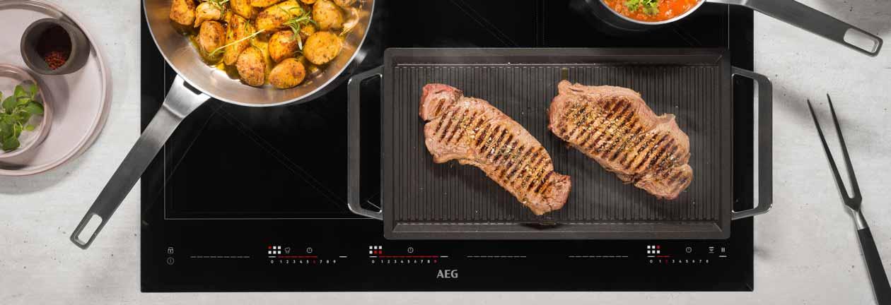 - Forvarm grillpanden godt og svits hver side af kødet i 1 minut