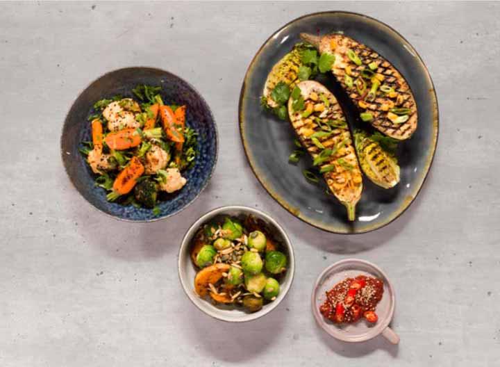 - Grill auberginen på kødsiden og grill i 6 minutter
