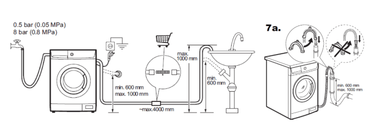 - Kontroller at din afløbsinstallation ikke er tilstoppet. Prøv evt. en vask med afløbsslangen i en balje eller håndvask.