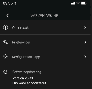 - Hvis du ikke bliver spurgt om opdatering i appen, skal du blot starte vaskeprogrammet og softwaren vil blive installeret når programmet er slut.