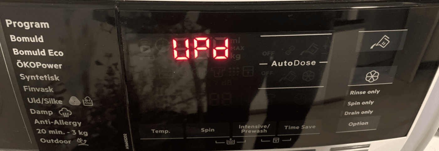- Vaskemaskinen viser UPd i displayet når vaskeprogrammet er slut